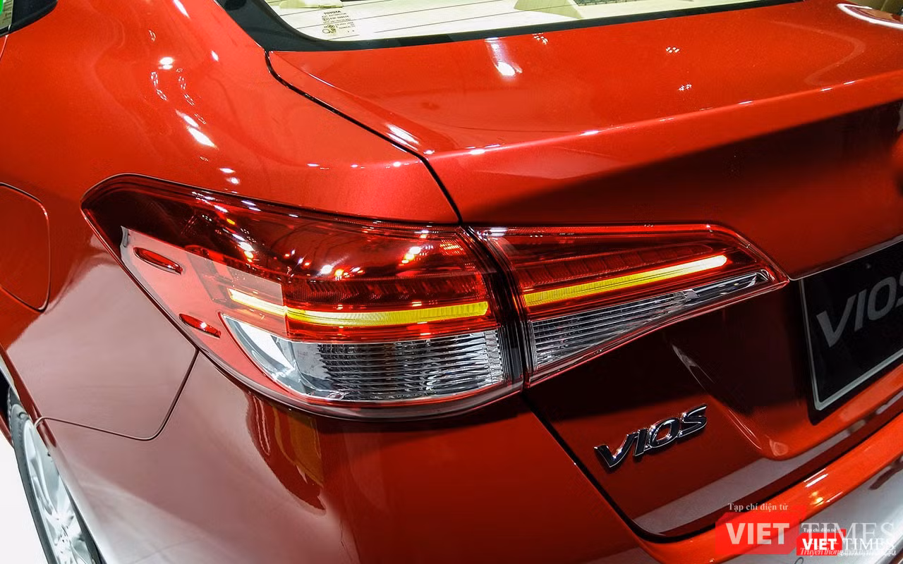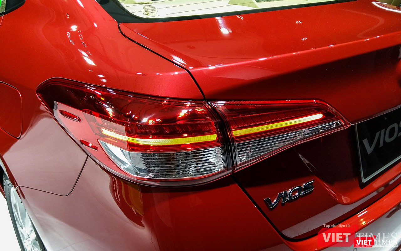 Ở phía sau, sự thay đổi rõ nét nhất chính là cụm đèn hậu được thiết kế mở rộng theo chiều ngang, hình dáng dường như được vay mượn ý tưởng của mẫu Kia Cerato hiện hành. Với phiên bản cao cấp 1.5G, cụm đèn hậu của Vios 2018 được trang bị công nghệ LED cho đèn phanh và nó thể hiện hiệu ứng khá đẹp trong điều kiện trời tối.