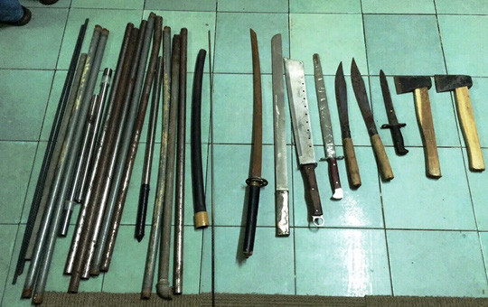 Trước đó, khoảng 23 giờ 30 ngày 26-1, trinh sát Công an TP HCM phối hợp với Công an quận Gò Vấp kiểm tra hành chính tiệm cầm đồ Quỳnh Hồng (số 1014 Quang Trung, phường 8, quận Gò Vấp). Tại đây, công an thu giữ 1 khẩu súng tự chế, 5 viên đạn chì, 1 quả lựu đạn, 15 tuýp sắt, 7 mã tấu tự chế… cùng nhiều tài liệu liên quan đến hoạt động cho vay nặng lãi của băng nhóm này.