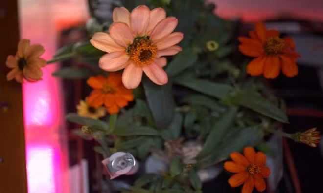Bông hoa đầu tiên thuộc họ hoa cúc nở trên ISS vào ngày 15/1/2016.