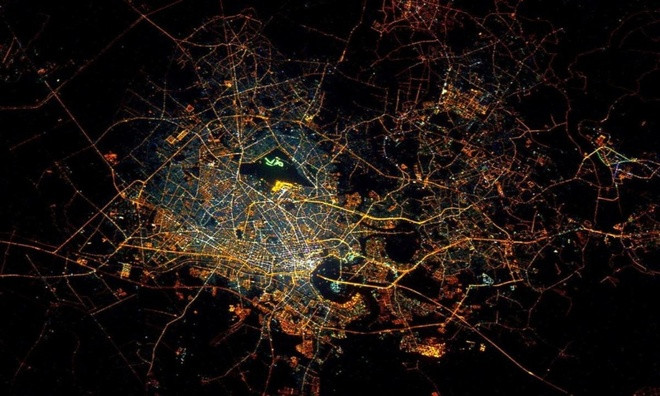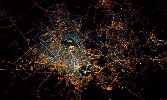 Quang cảnh lung linh vào ban đêm của Thành phố Hồ Chí Minh, Việt Nam, được Kelly chụp từ vũ trụ.