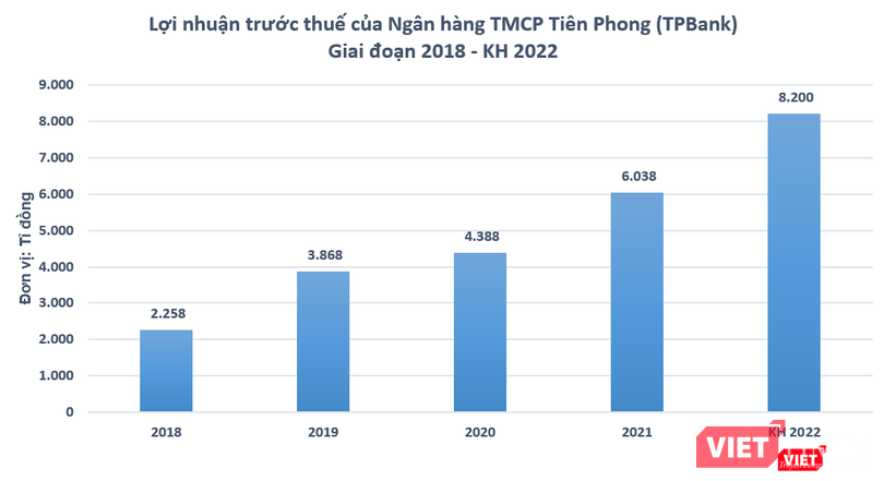 Theo đó, TPBank đặt mục tiêu lợi nhuận trước thuế đạt 8.200 tỉ đồng, tăng 36% so với thực hiện năm 2021.