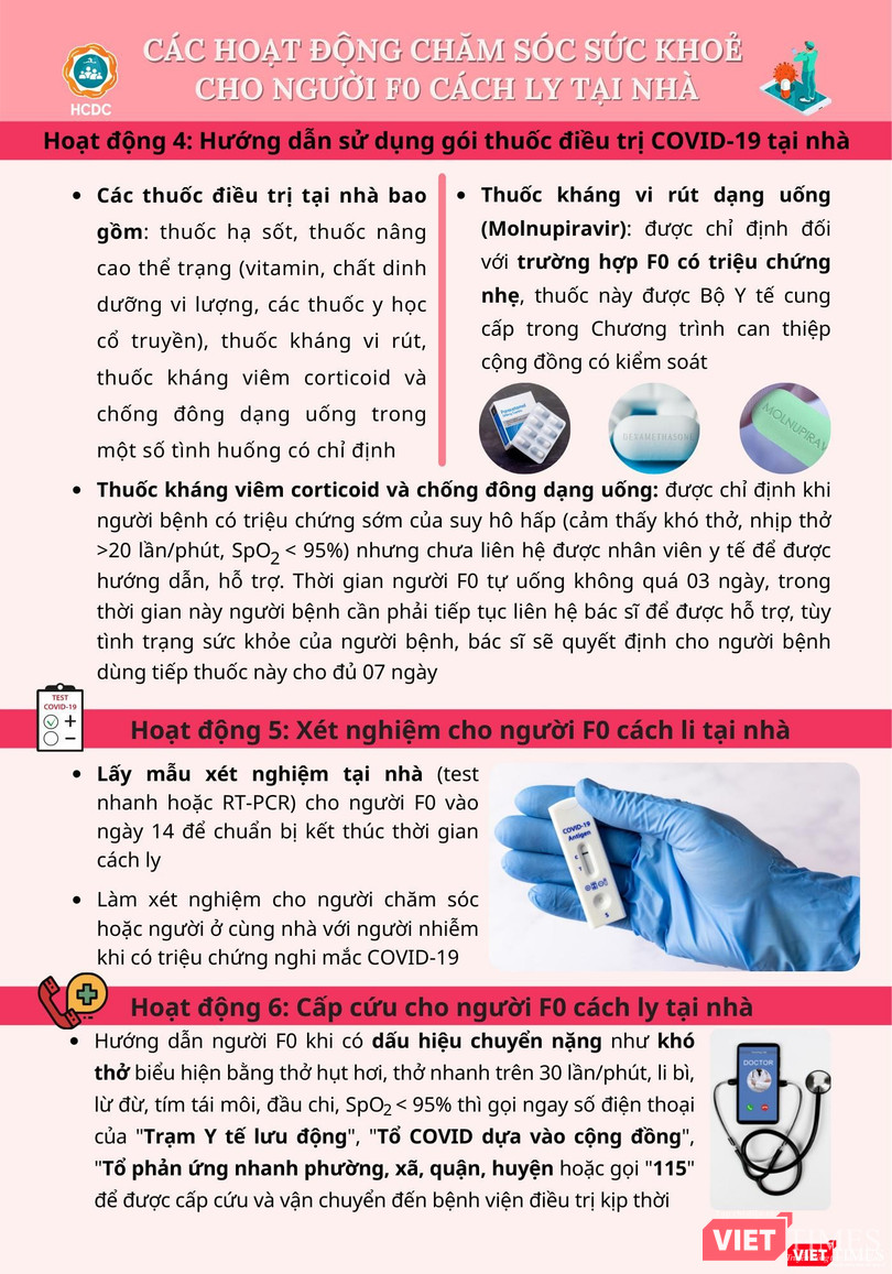 Kèm theo đó, Sở Y tế TP.HCM đã ban hành đến văn bản hướng dẫn điều trị F0 tại nhà phiên bản chỉnh sửa lần thứ 5. Chi tiết hướng dẫn của Sở Y tế TP.HCM như các hình bên dưới.