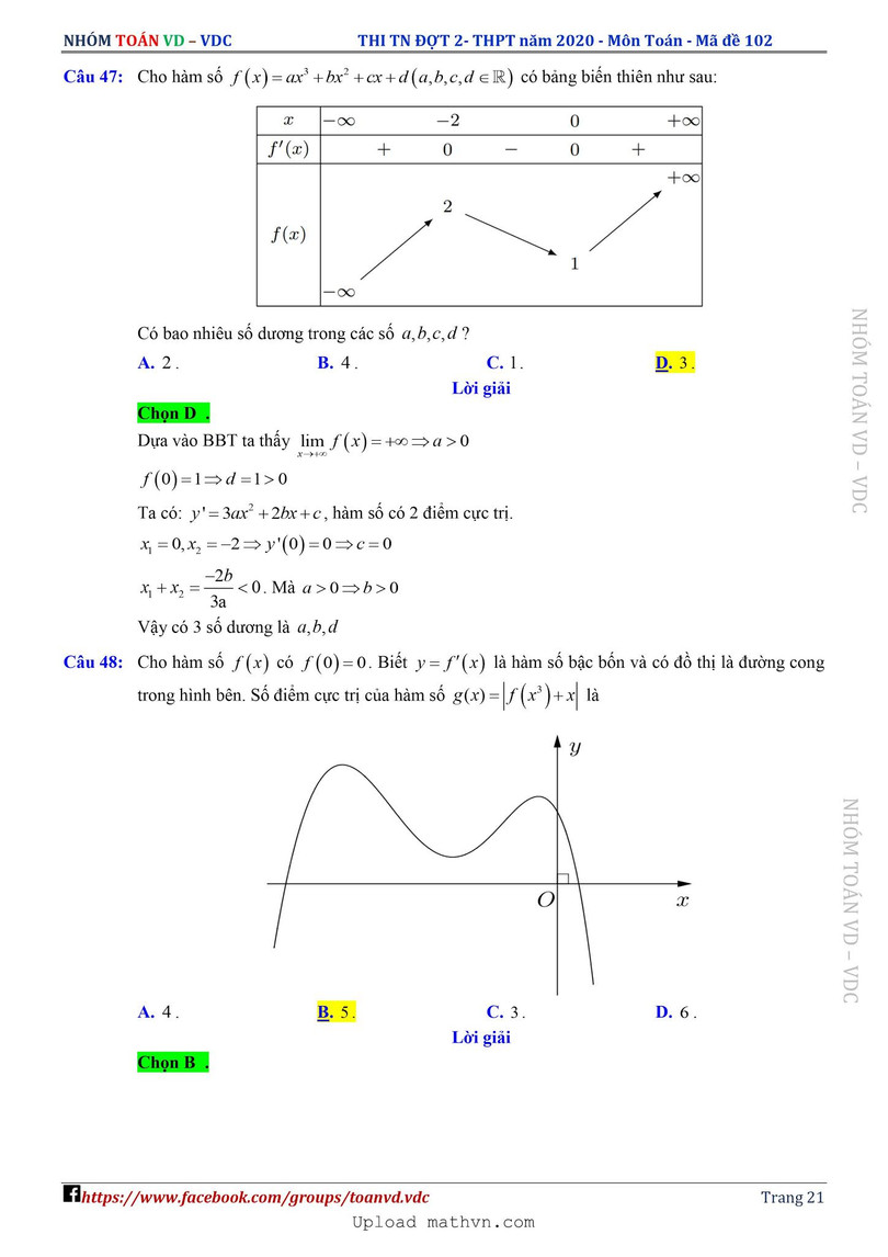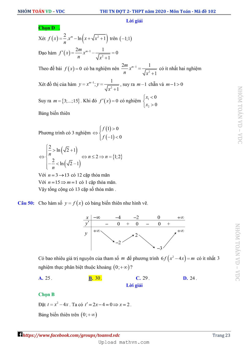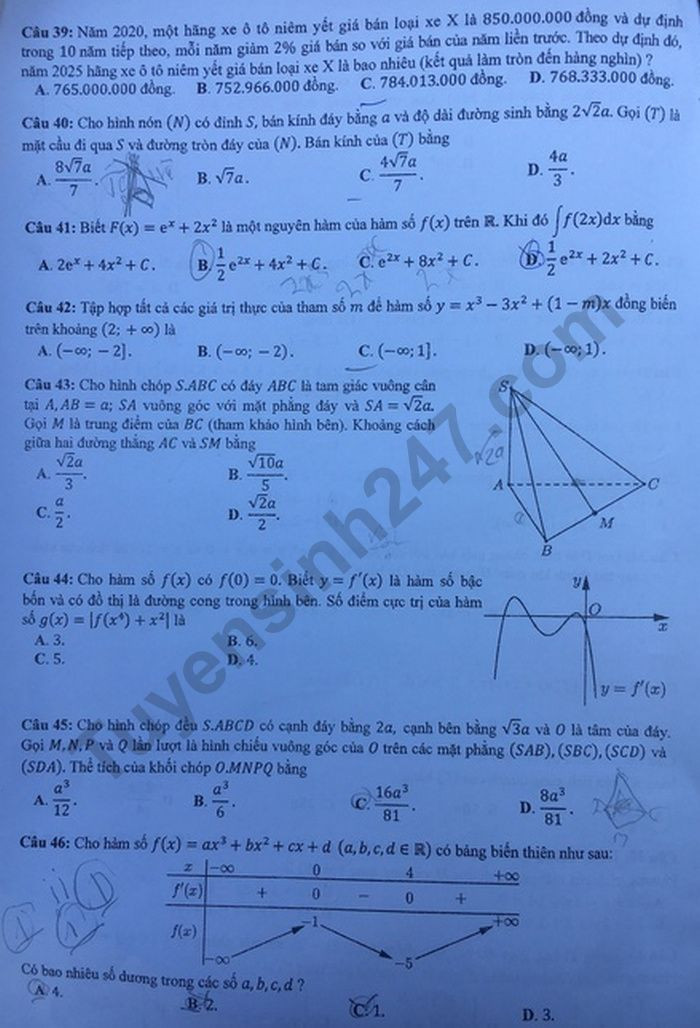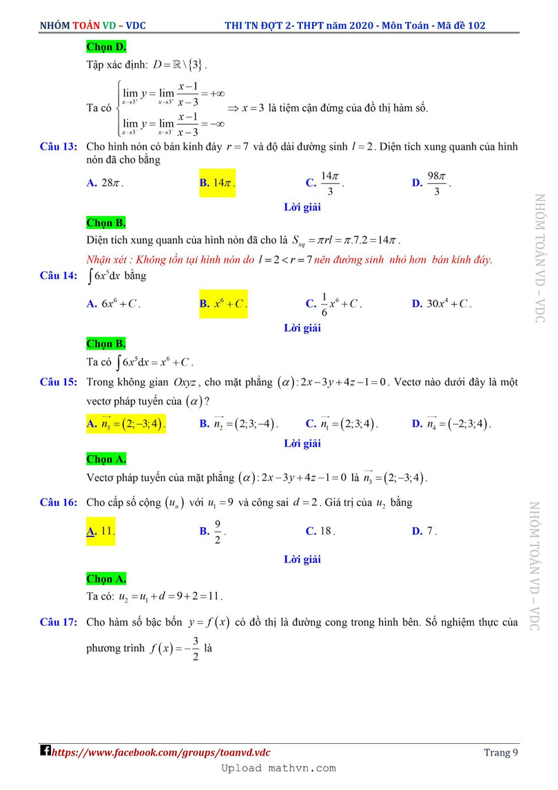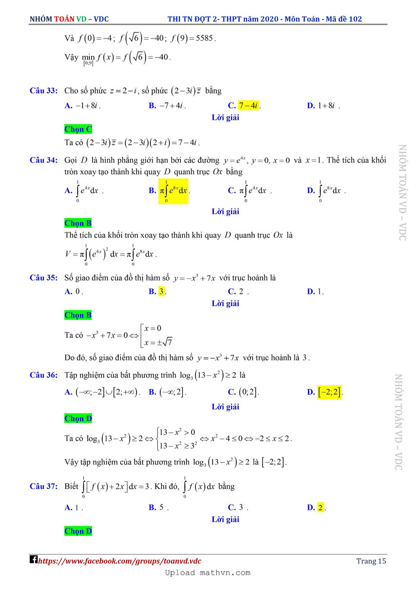 Xem lời giải chi tiết đề thi tốt nghiệp THPT năm 2020 môn Toán mã đề 102
