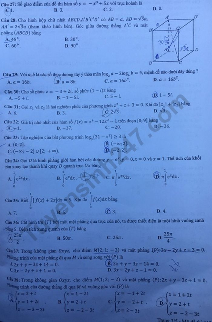Xem đáp án tham khảo đề thi tốt nghiệp THPT năm 2020 môn Toán mã đề 107 tại đây.