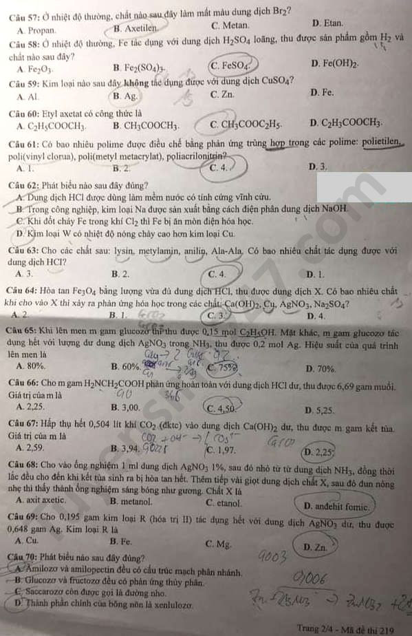 VietTimes cập nhật đề thi tốt nghiệp THPT năm 2020 môn Hóa mã đề 219.