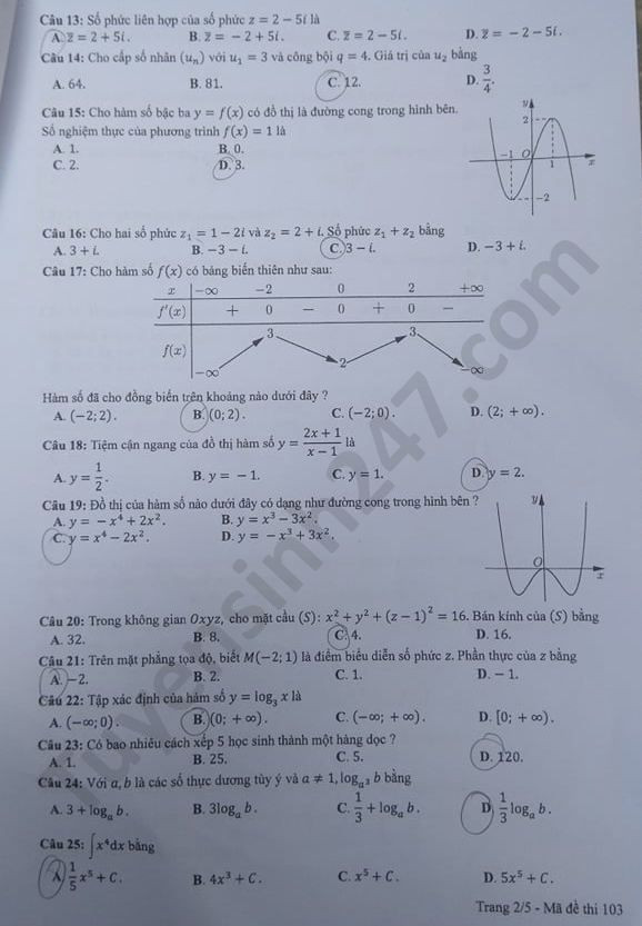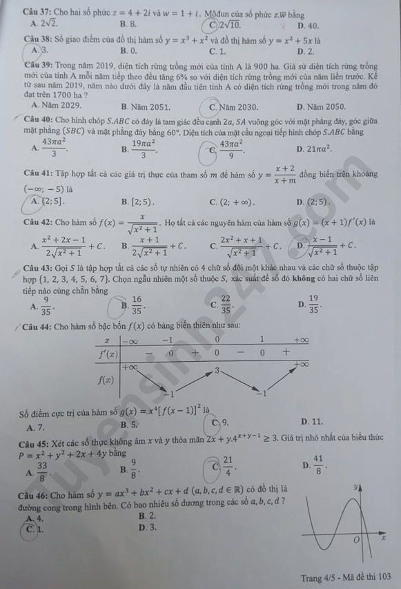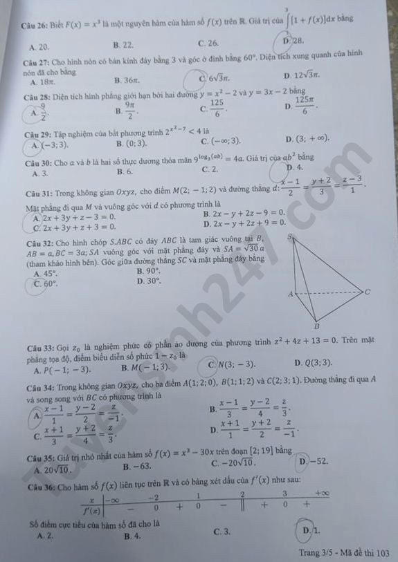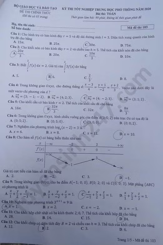 VietTimes – Đáp án đề thi tốt nghiệp THPT năm 2020 môn Toán mã đề 103 được VietTimes cập nhật nhanh chóng, chính xác. Chúc sĩ tử có kỳ thi tốt nghiệp THPT thành công!