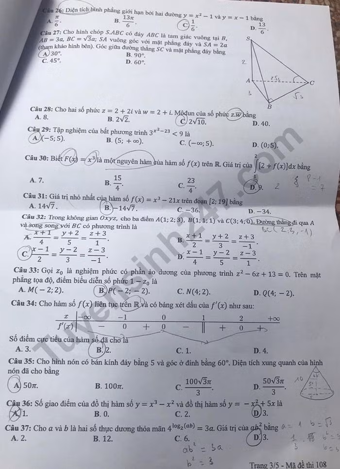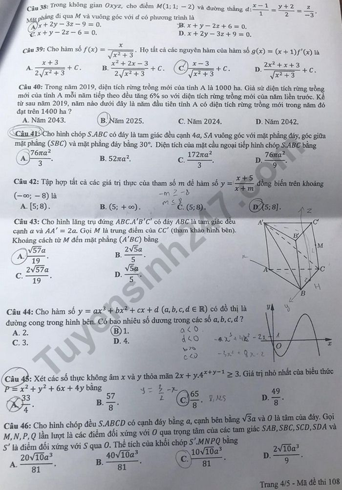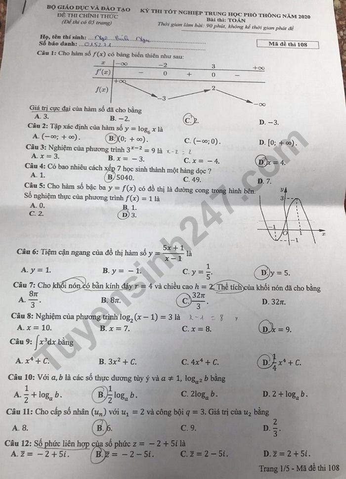 VietTimes – Đáp án đề thi tốt nghiệp THPT năm 2020 môn Toán mã đề 108 được VietTimes cập nhật nhanh chóng, chính xác. Chúc sĩ tử có kỳ thi tốt nghiệp THPT thành công!