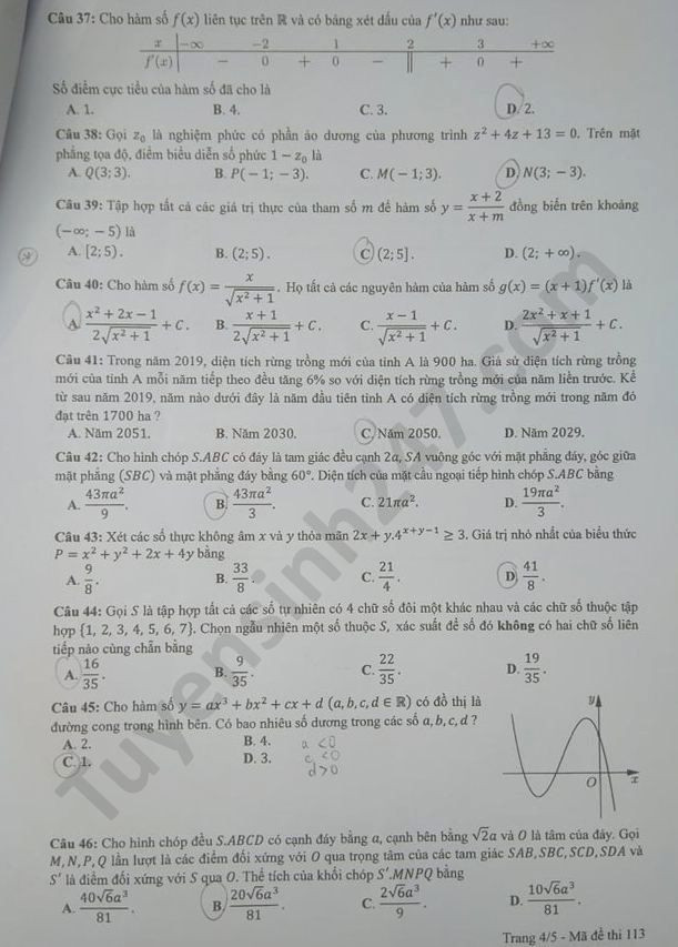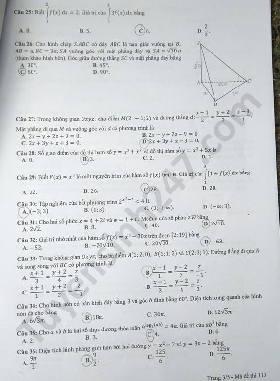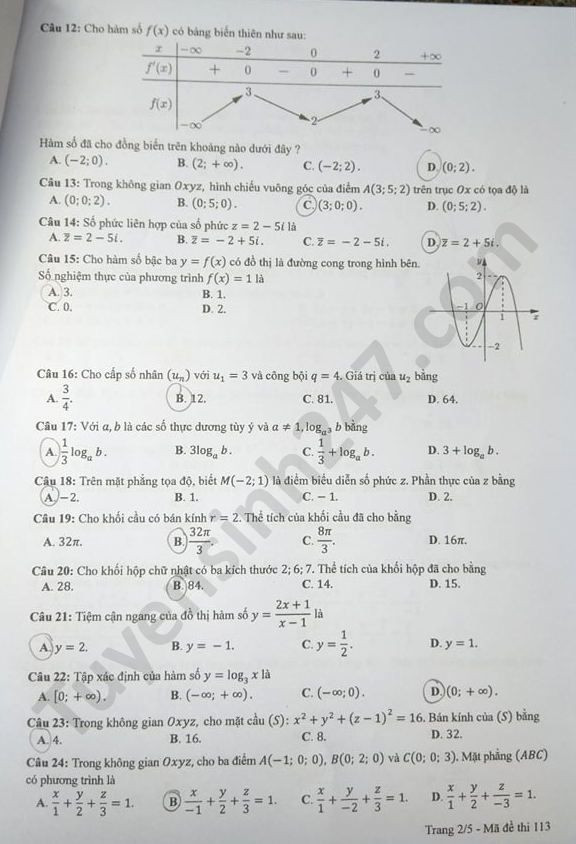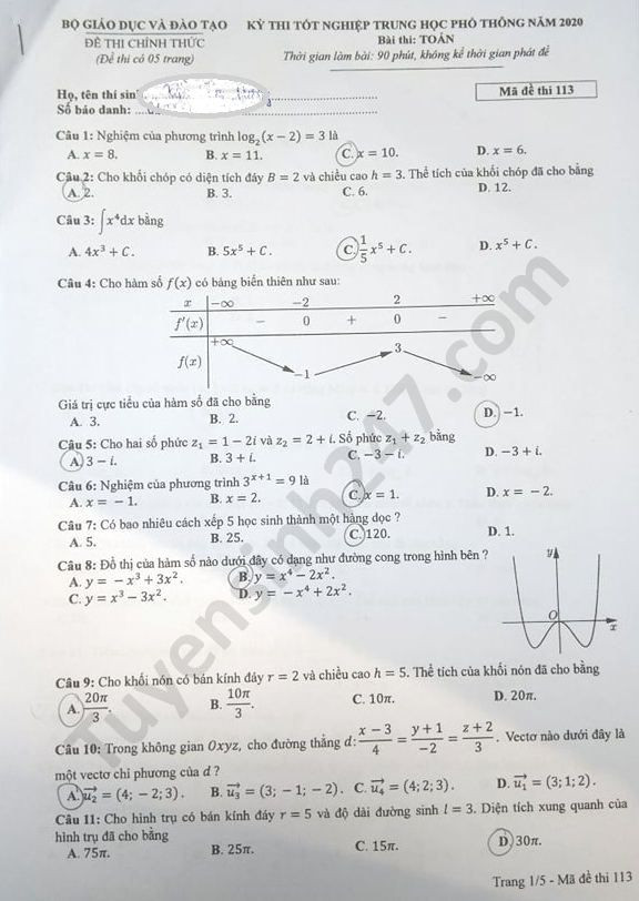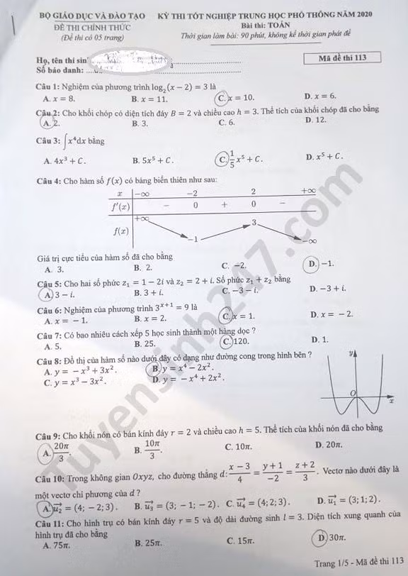 VietTimes – Đáp án đề thi tốt nghiệp THPT năm 2020 môn Toán mã đề 113 được VietTimes cập nhật nhanh chóng, chính xác. Chúc sĩ tử có kỳ thi tốt nghiệp THPT thành công!