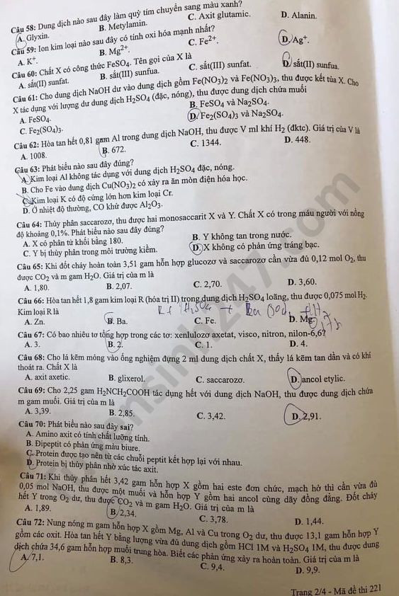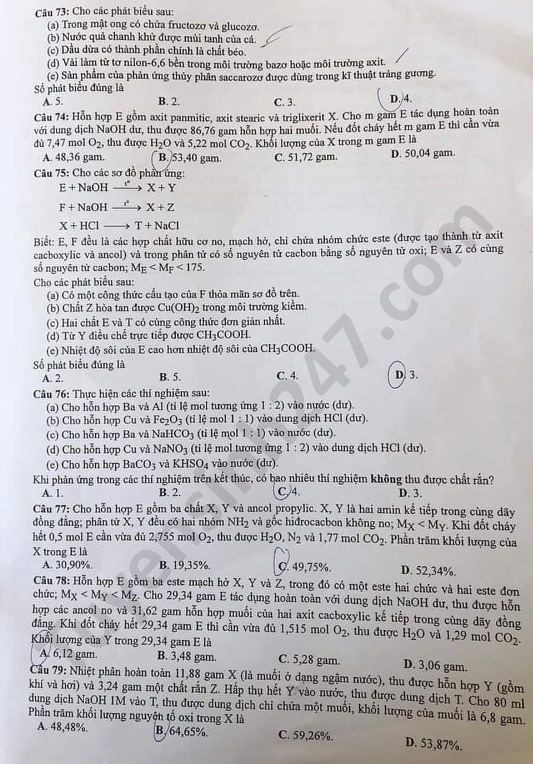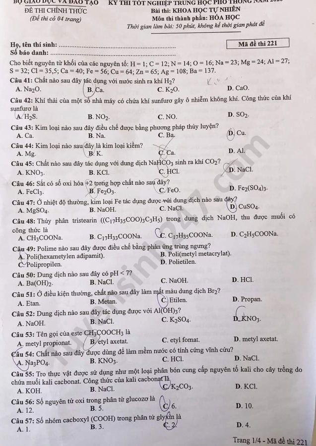 Đề thi tốt nghiệp THPT môn Hóa học 2020 có các mã đề gồm: 201, 202, 203, 204, 205, 206, 207, 208, 209, 210, 211, 212, 213, 214, 215, 216, 217, 218, 219, 220, 221, 222, 223, 224.