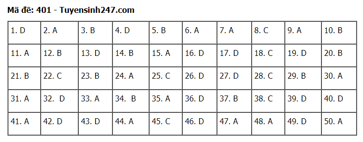 Đề thi và đáp án tham khảo đề thi tốt nghiệp THPT năm 2020 môn tiếng Anh mã đề 401 sẽ được cập nhật dưới đây.