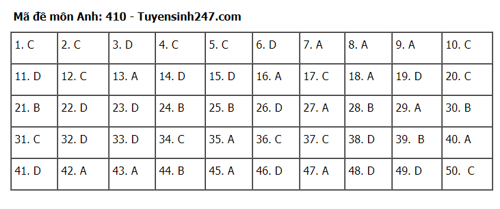 VietTimes – Đáp án đề thi tốt nghiệp THPT năm 2020 môn tiếng Anh mã đề 410 được VietTimes cập nhật nhanh chóng, chính xác. Chúc sĩ tử có kỳ thi tốt nghiệp THPT thành công!