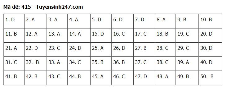 Đề thi và đáp án tham khảo đề thi tốt nghiệp THPT năm 2020 môn tiếng Anh mã đề 415 sẽ được cập nhật dưới đây.