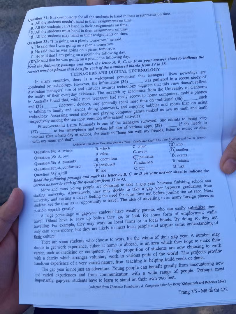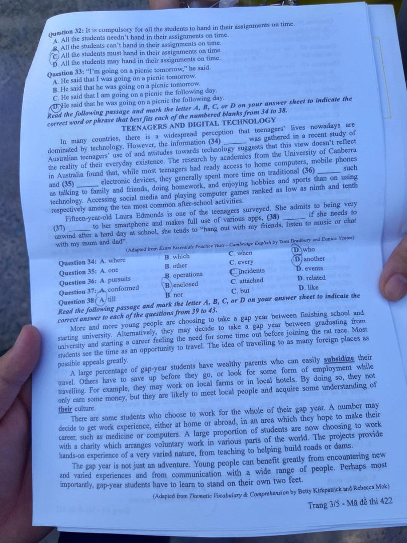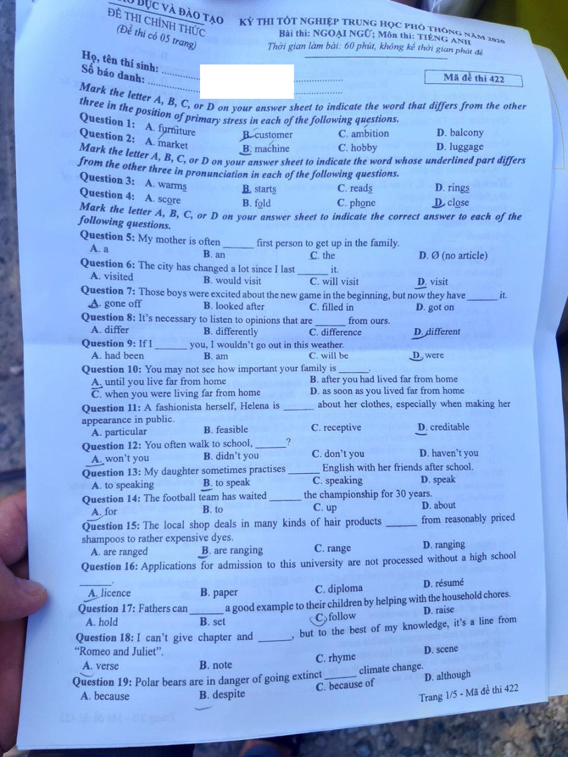 VietTimes – Đáp án đề thi tốt nghiệp THPT năm 2020 môn tiếng Anh mã đề 422 được VietTimes cập nhật nhanh chóng, chính xác. Chúc sĩ tử có kỳ thi tốt nghiệp THPT thành công!