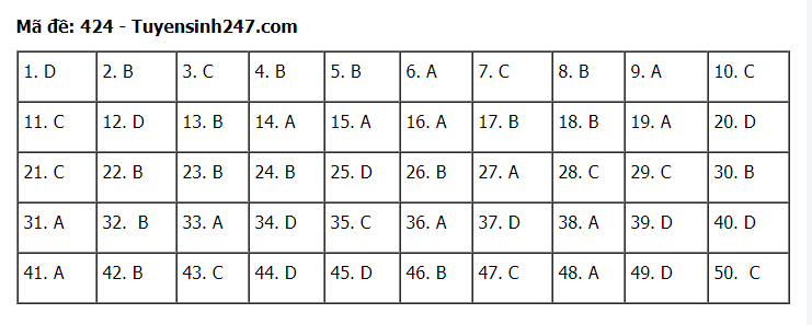 VietTimes – Đáp án đề thi tốt nghiệp THPT năm 2020 môn tiếng Anh mã đề 424 được VietTimes cập nhật nhanh chóng, chính xác. Chúc sĩ tử có kỳ thi tốt nghiệp THPT thành công!