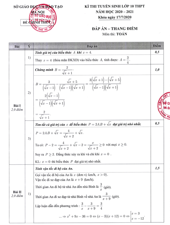 VietTimes – Đáp án đề thi môn Toán vào lớp 10 TP Hà Nội năm 2020 được VietTimes cập nhật liên tục, nhanh chóng và chính xác, cung cấp thông tin tham khảo cho thí sinh và phụ huynh.