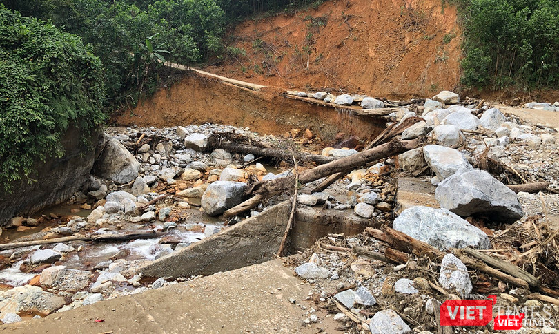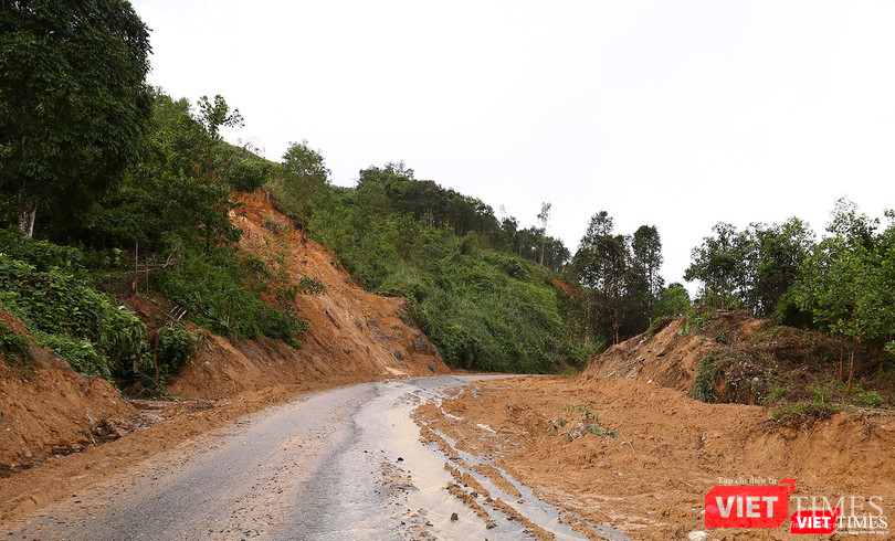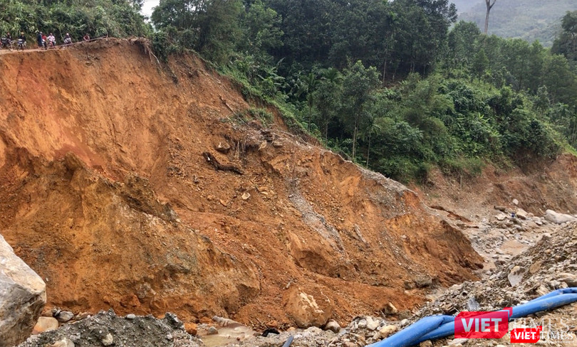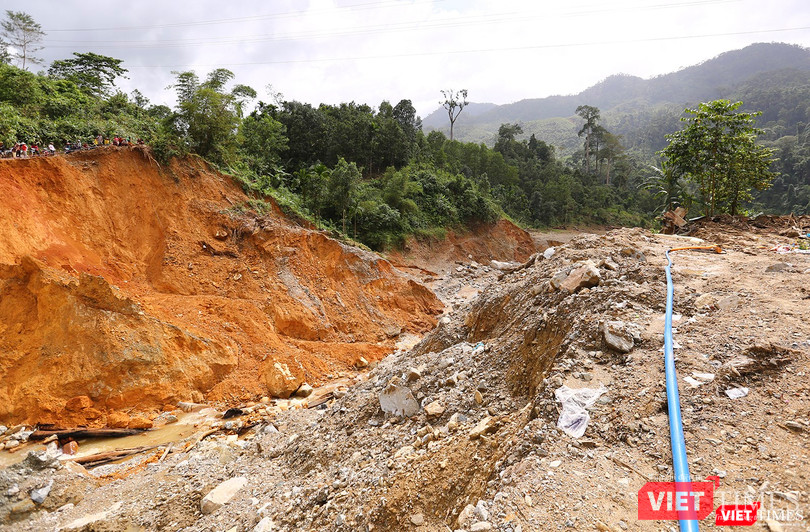 Đường đi vào hiện trường bị sạt lở nghiêm trọng
