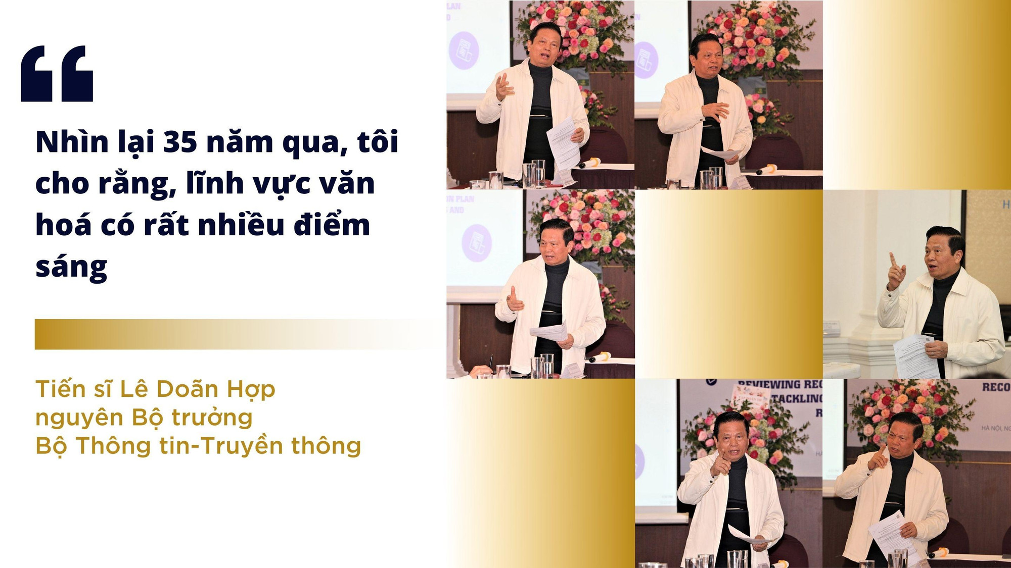 Nhìn lại 35 năm qua, tôi cho rằng lĩnh vực văn hoá có rất nhiều điểm sáng: Thứ nhất, bản sắc văn hoá các dân tộc được bảo tồn, duy trì, phát triển, nâng cao. Đất nước đổi mới, kinh tế hội nhập sâu rộng, nhưng văn hoá không bị hoà tan, mai một. Điều này được thể hiện rất rõ là văn hoá của 54 dân tộc anh em không bị nhạt phai mà được gìn giữ, phát huy giá trị truyền thống không chỉ để bảo tồn mà còn là thế mạnh của các tỉnh phía Bắc, Tây Nguyên thu hút khách du lịch trong và ngoài nước.