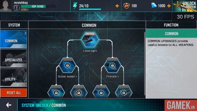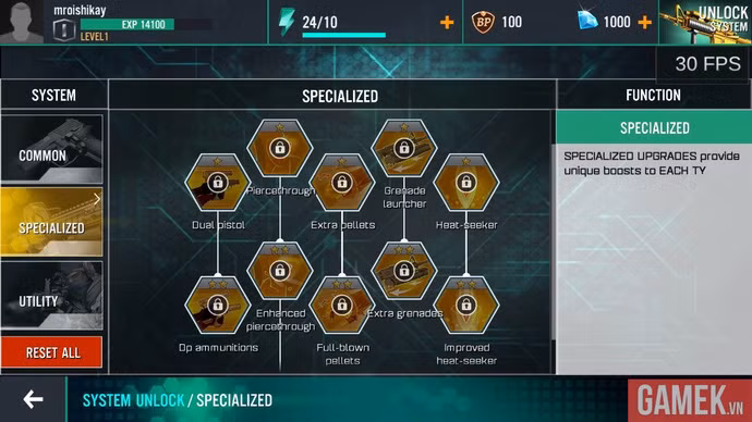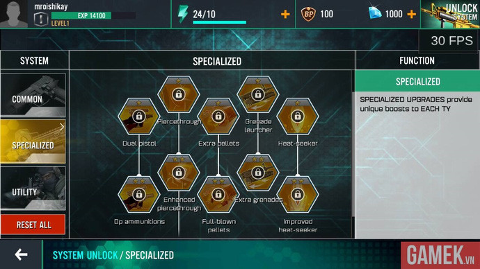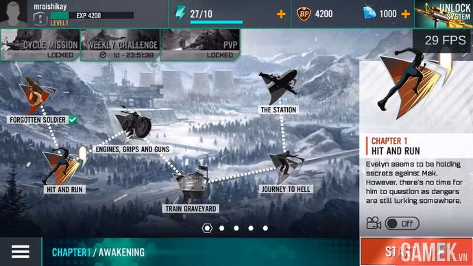 Sau màn chơi hướng dẫn cơ bản ban đầu, giao diện chính FZ9 hiện ra và tôi cũng phần nào nhận thấy đây là một tựa game hình thành theo hướng Free to Play. Theo đó, game chia ra thành nhiều nhiệm vụ trong các màn chơi và mỗi lần tham gia bạn cần bỏ ra điểm thể lực cần thiết. Bên cạnh đó, để tăng thêm phần thú vị thì hãng phát triển còn thêm vào hệ thống nâng cấp khả năng chiến đấu khác nhau. Tuy nhiên chúng lại đòi hỏi điểm kinh nghiệm bạn nhận được sau mỗi màn chơi và đây cũng không phải là chuyện một sớm một chiều có thể mở khóa được điểm cần thiết.