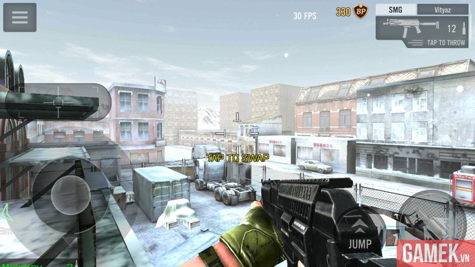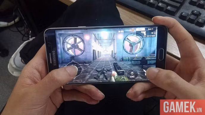 Điều thú vị nhất mà FZ9 mang tới cho tôi là hệ thống điều khiển được tích hợp ngay trên màn hình, không quá nhiều nhưng là đủ để chúng ta đưa ra thao tác cần thiết khi trải nghiệm. Bạn có thể điều khiển nhân vật di chuyển thông qua hệ thống phím ảo phía bên tay trái, điều tâm ngắm bằng cách vuốt trực tiếp trên màn hình và xả đạn thông qua phím biểu tượng bên góc phải. Thật tuyệt vời, hệ thống trong game tiếp nhận mọi hành động vô cùng nhạy bén, không hè có dấu hiệu giật, lag nào xảy ra.