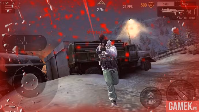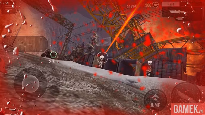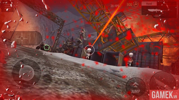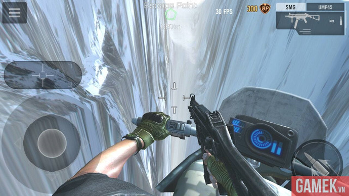 Chưa dừng lại ở đó, FZ9 còn thật sự gây chú ý hơn với hiệu ứng Bullet Time - thời gian sẽ chậm lại mỗi khi chúng ta không thao tác di chuyển. Về cá nhân, tôi từng biết tới hiệu ứng này trong series game Max Payne và không hề nghĩ gặp lại nó trên một tựa game bắn súng trên di động. Cũng nhờ vào hiệu ứng độc đáo này, bạn sẽ có thể tự tạo ra những pha né đạn xuất thần hay kết thúc nhiều kẻ thù ngay khi vẫn còn đang lơ lửng trên không trung... Mọi thứ diễn ra như một thước phim quay chậm vậy!