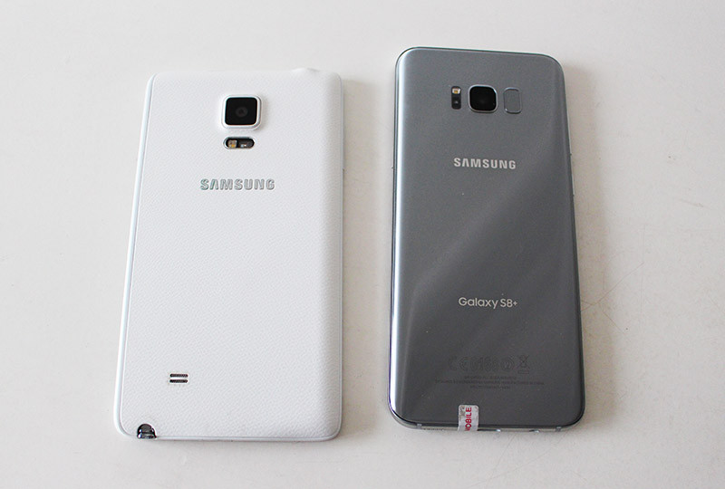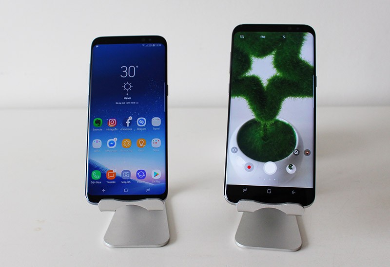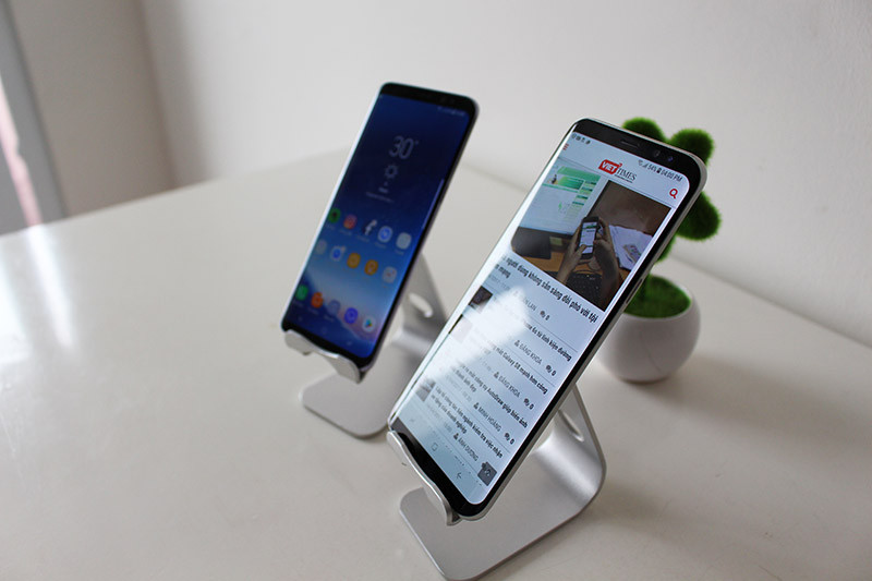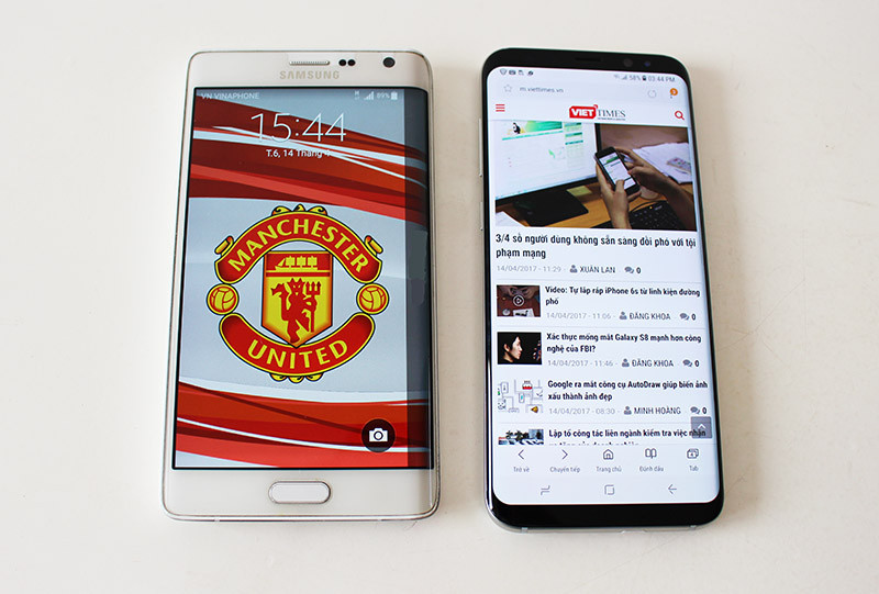 Kích thước tổng thể của Galaxy S8 Plus khá nhỏ gọn mặc dù nó chứa màn hình 6,2 inch. Đặt cạnh chiếc Galaxy Note Edge có màn hình 5,6 inch, Galaxy S8 Plus nhìn nhỏ gọn hơn hẳn.