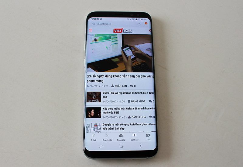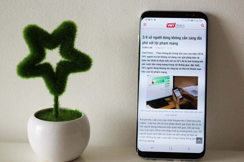 Một tính năng mới khác trên Galaxy S8 Plus là nhận diện khuôn mặt để xác thực và mở khóa điện thoại. Mặc dù tính năng này đã bị một số người dùng trên thế giới "qua mặt" bằng cách sử dụng ảnh selfie từ một thiết bị khác, nhưng VietTimes đã thử nghiệm và nhận thấy không dễ để đánh lừa hệ thống nhận diện khuôn mặt trên Galaxy S8 Plus.