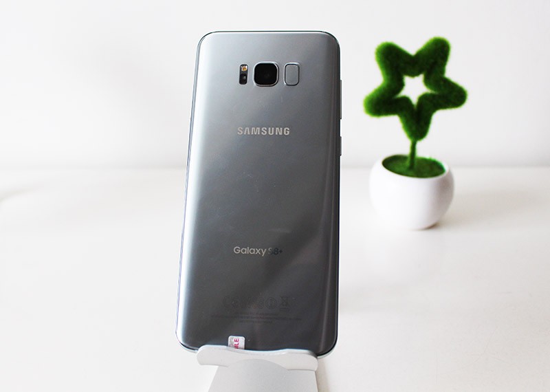 Mặt lưng của Galaxy S8 Plus chứa máy quét vân tay và cụm camera. Mặt lưng này hơi bám vân tay. Do máy quét vân tay được đặt gần camera nên người dùng nếu chưa quen rất dễ chạm tay vào ống kính camera. Vị trí đặt máy quét hơi bất tiện đối với những người có ngón tay ngắn.