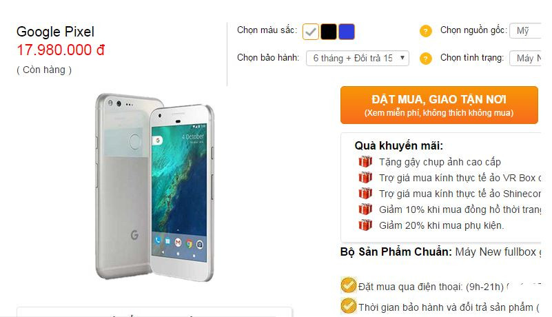 Mức giá hiện nay của Google Pixel bản 32GB tại một cửa hàng xách tay tại Việt Nam (ảnh chụp màn hình)