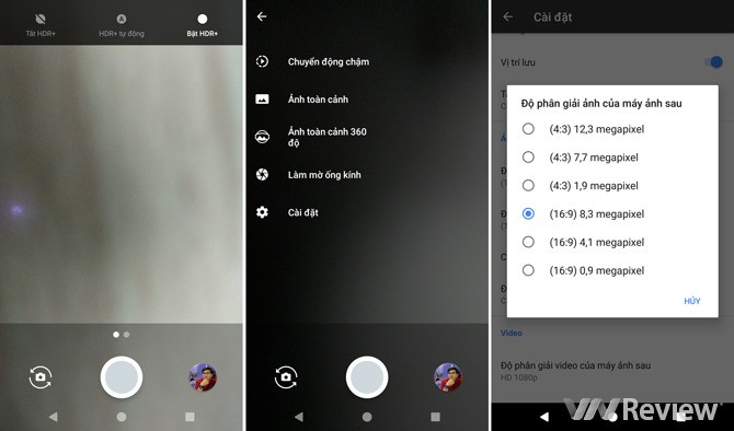 Giao diện chụp ảnh, các chế độ chụp và các mức phân giải của camera chính trên Pixel