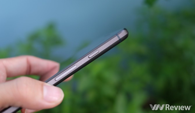 Cạnh bên phải của máy bố trí phím nguồn cùng phím điều chỉnh âm lượng, cạnh trái máy chỉ bố trí khe cắm thẻ SIM.