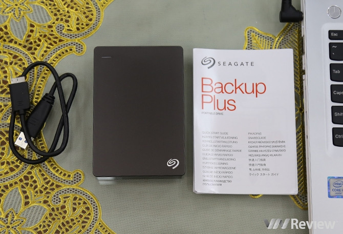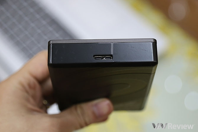 Mở hộp, chiếc ổ cứng được giữ trong một vỏ nhựa đi kèm là dây kết nối và tờ hướng dẫn sử dụng. Dây cáp kết nối hơi ngắn (khoảng 45cm) và cứng.
