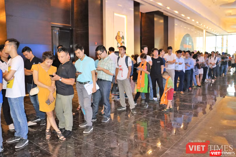 Hàng trăm người đa phần là các bạn trẻ yêu công nghệ đã xếp hàng dài để được vào khu trải nghiệm "Trạm không gian" của FPT. Đây là một phần trong chương trình kỷ niệm 30 năm ngày thành lập tập đoàn công nghệ FPT.