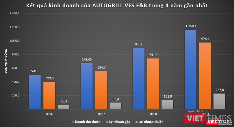 Theo dữ liệu của VietTimes, trong 4 năm gần nhất, kết quả kinh doanh của Autogrill VFS F&B liên tục được cải thiện qua từng năm.