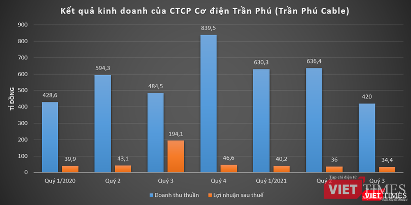 Sau khi trừ đi các loại chi phí và thuế, Trần Phú Cable báo lãi sau thuế quý 3/2021 ở mức 34,4 tỉ đồng, giảm 82,3% so với cùng kỳ năm 2020.