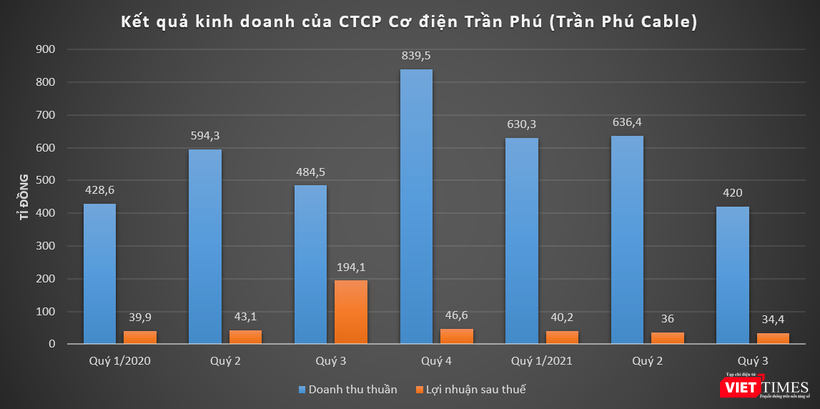 Sau khi trừ đi các loại chi phí và thuế, Trần Phú Cable báo lãi sau thuế quý 3/2021 ở mức 34,4 tỉ đồng, giảm 82,3% so với cùng kỳ năm 2020.