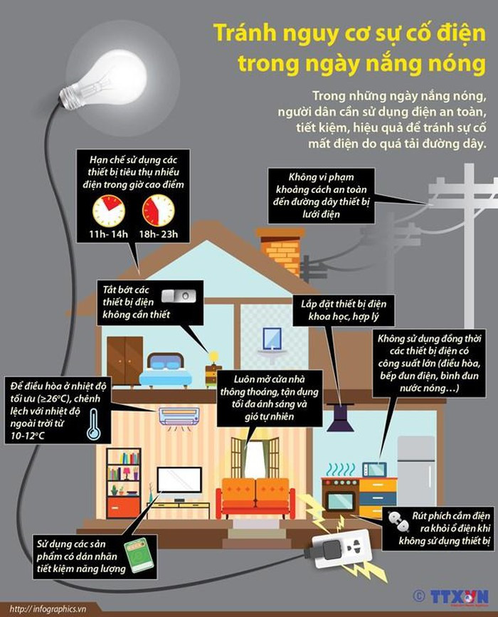 Trong những ngày nắng nóng, người dân cần sử dụng điện an toàn, tiết kiệm, hiệu quả để tránh sự cố mất điện do quá tải đường dây./.