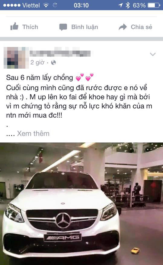 Liên lạc với một trong những người đã chia sẻ dòng status này lên facebook, bạn này khẳng định rằng bản thân không hề có ý khoe của mà chỉ nghĩ đến việc tạo ra câu chuyện hài hước cho bạn bè của mình.