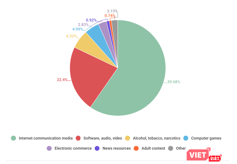 Chuyên mục xếp thứ hai trong số các chuyên mục được truy cập bởi đối tượng này là “phần mềm, âm thanh, và video” (22%). Những nội dung này đã trở nên phổ biến một cách đáng kể từ năm ngoái (vươn lên từ vị trí thứ 15, chiếm 6%). Trong số đó, các trang web có chứa nội dung về rượu, thuốc lá và ma túy (6%) đều bị loại bỏ.