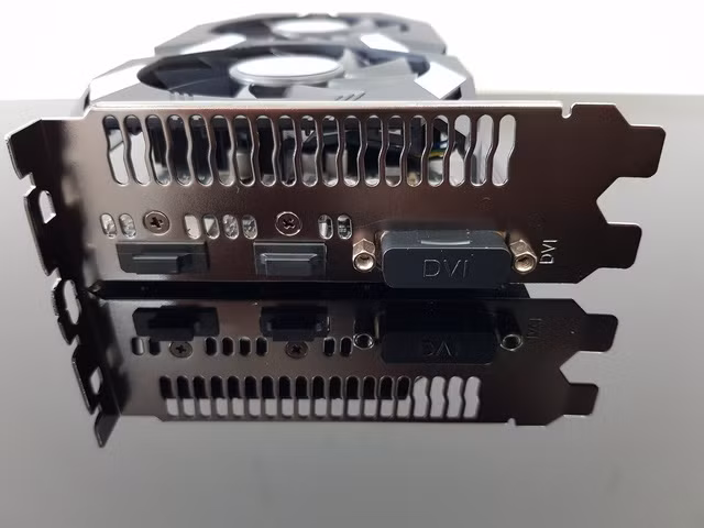 Về mặt kết nối, thật là lạ khi Asus vẫn còn giữ lại một cổng DVI vốn chẳng có mấy ai sử dụng. Có lẽ vẫn còn đâu đó một số thị trường còn đang sử dụng loại cổng này chăng? Ngoài ra, GTX 1650 Dual cũng được trang bị những kết nối phổ thông như HDMI và DisplayPort.