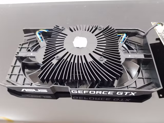 Dàn tản nhiệt nhôm được tiếp xúc trực tiếp với GPU trên GTX 1650 Dual khiến chúng ta liên tưởng đến những chiếc tản stock dành cho CPU Intel chỉ có điều là nó mỏng hơn và có diện tích lớn hơn để phù hợp với hình dáng của những chiếc card đồ họa mà thôi. Chìa khóa cho hệ thống làm mát này nằm ở bộ đôi quạt thổi 80cm ở mặt trước thổi trực tiếp vào dàn tản và cả hệ thống 3 phase nguồn cấp điện để cả 2 khu vực quan trọng này đều được mát đồng đều mà không phải chia sẻ nhiệt cho nhau.