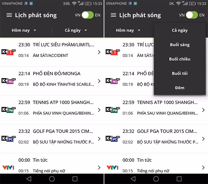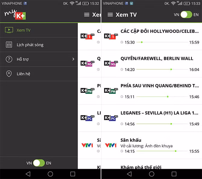 Xem trực tiếp trận tennis qua myK+ trên Huawei P9 (chạy Android)