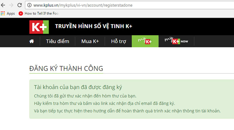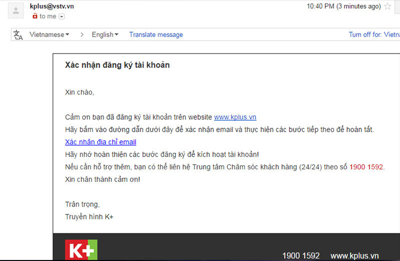 Sau khi gửi thông tin đăng ký tài khoản thành công, K+ sẽ gửi đến bạn một email để xác thực