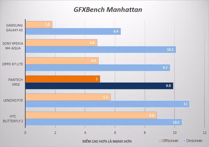 Phần mềm GFX Bench ở bài đo Manhattan đánh giá hiệu năng xử lý đồ hoạ của GPU