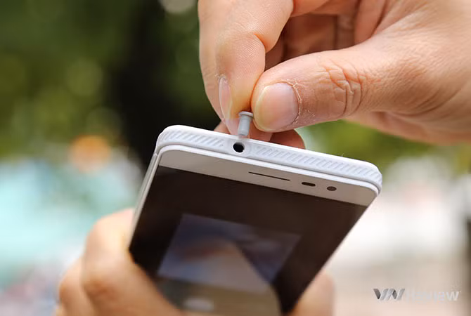 Máy hỗ trợ 2 SIM chuẩn micro. Khay SIM và cổng micro-USB có nắp đậy chống nước.