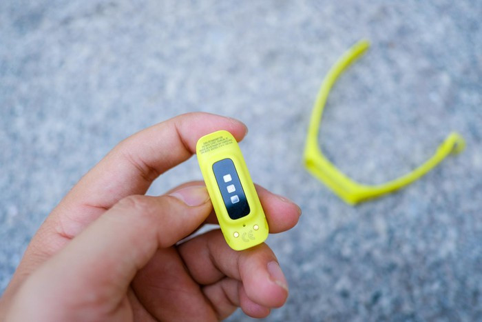 Bên cạnh đó, Galaxy Fit e còn kết nối với ứng dụng Samsung Health giúp thống kê các chỉ số như bước chân, giấc ngủ, lượng calo tiêu thụ… Người dùng có thể thực hiện hơn 30 bài tập trên thiết bị này.