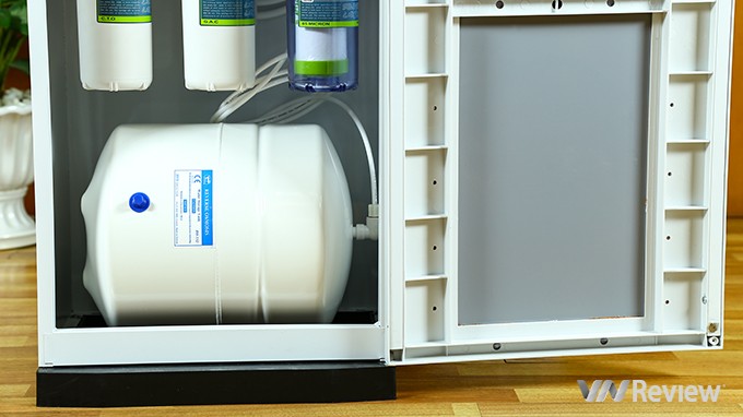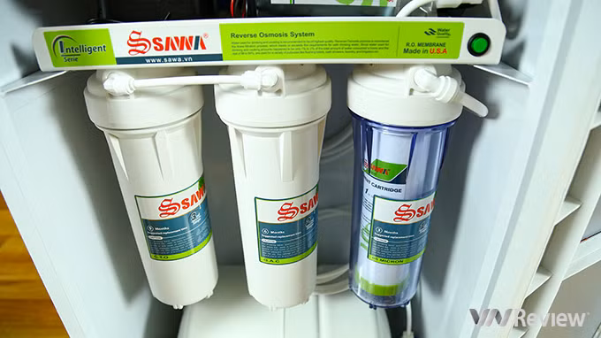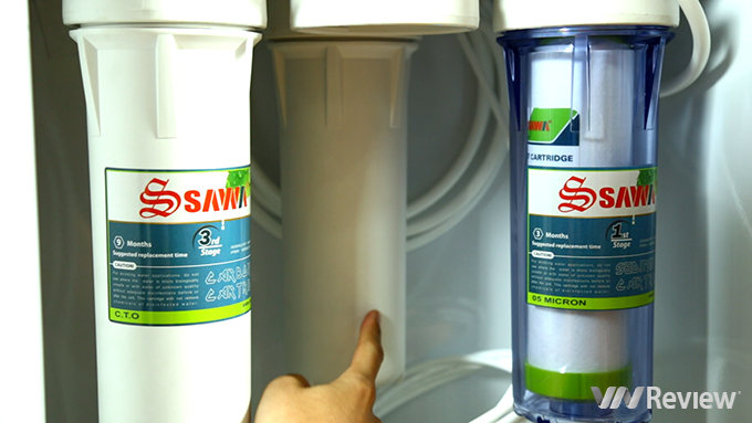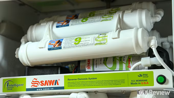 Và sau khi qua 4 lõi lọc đầu tiên, nước sẽ được đẩy tiếp vào khoang màng lọc thẩm thấu ngược. Tại đây nước lọc tinh khiết sẽ được tạo ra và được đưa xuống bình áp tích trữ nước ở phía dưới. Nước lúc này đã tinh khiết và có thể sử dụng được luôn. Tuy nhiên do quá trình lọc đã loại bỏ hết những tạp chất cũng như khoáng chất có trong nước. Vì vậy Sawa đã trang bị thêm 4 lõi lọc để bổ sung khoáng chất và tái tạo các chức năng của nước.