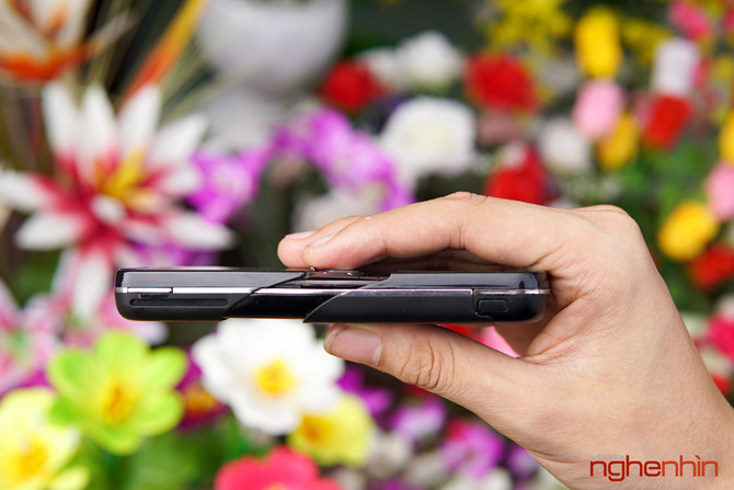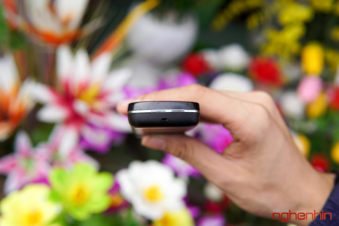 Cạnh trái là loa ngoài và nút mở nắp pin.
