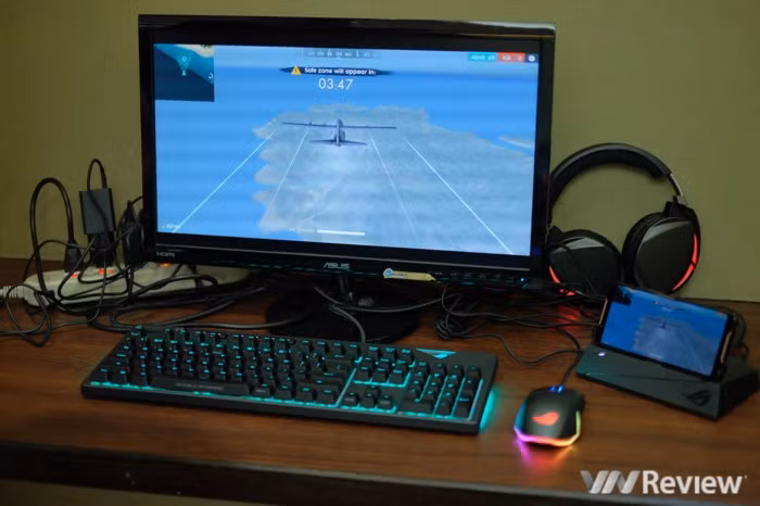 Bên cạnh chiếc điện thoại ROG Phone, Asus còn giới thiệu rất nhiều phụ kiện đi kèm. Với game thủ muốn có trải nghiệm như trên máy tính, bộ dock kết nối sẽ cho phép cắm phím, chuột và xuất hình ảnh ra màn hình lớn hay TV.