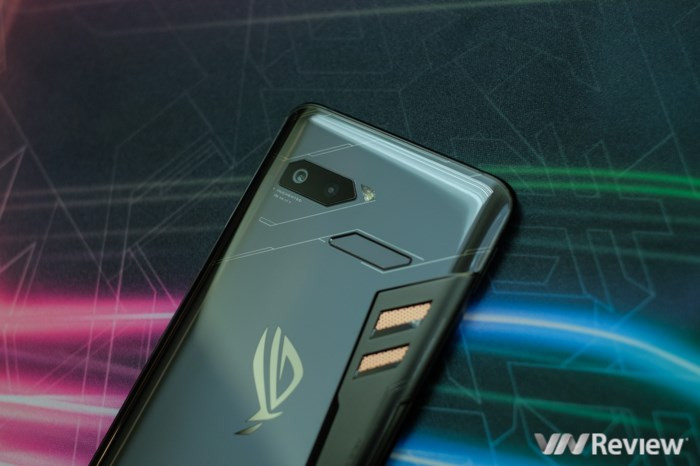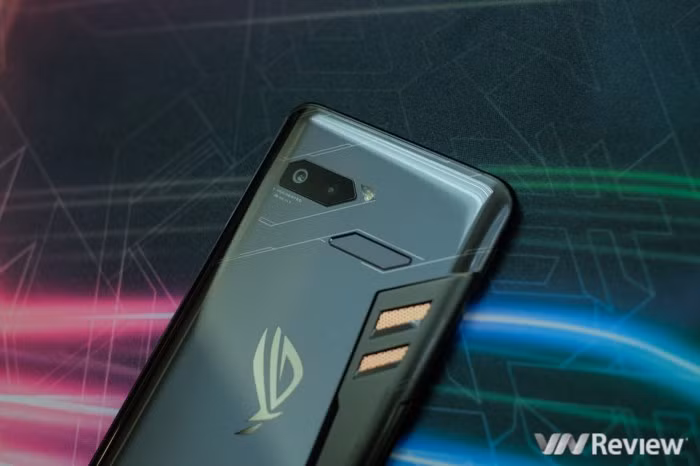Điểm nhấn đầu tiên của ROG Phone đến từ thiết kế khá khác lạ, hầm hố và mang đậm chất gamer của máy. Mặt lưng của mẫu smartphone chuyên game này sử dụng chất liệu chính là kính, nhưng có một khu vực tản nhiệt đặc biệt mà Asus gọi là "buồng tản nhiệt 3D". Phần tản nhiệt này sẽ giúp máy hoạt động mát hơn khi chơi game, vốn là các tác vụ tiêu tốn tài nguyên hệ thống và làm điện thoại nóng lên đáng kể. Tất nhiên, do phải gánh phần tản nhiệt nên ROG Phone cũng nặng tới 200g và dày tới 8.6mm. "Đầm" hơn đáng kể so với mức khoảng trung bình khoảng 180g và 8mm của đa số smartphone hiện nay.