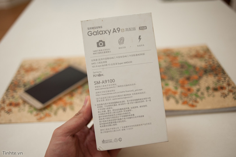 Máy sở hữu CPU Snapdragon 652 giống như A9, đây là con chip khá mạnh nếu xét về hiệu năng. Nó sở hữu 4 nhân A72 1.8Ghz và 4 nhân A53, tổng cộng chúng ta có con chip 8 nhân. Cùng với đó là RAM dung lượng 4GB và bộ nhớ trong 32GB kèm khe cắm thẻ micro-SD. Samsung trang bị sẵn cho A9 Pro hai khe SIM ở cạnh phải còn khe thẻ nhớ thì được đặt trên đỉnh máy. Ngoài ra, A9 Pro còn có camera độ phân giải cao hơn A9 (16MP so với 13MP), cảm biến vân tay, Android 6.0.1 cài sẵn và pin 5000mAh. Viên pin 5000mAh rất khủng này được cho sẽ cho khả năng sử dụng máy trong 3 ngày nhưng mình nghĩ con số thực tế sẽ kém hơn nhưng dù sao thì 5000mAh là một con số rất ấn tượng rồi.